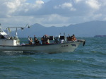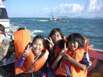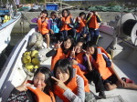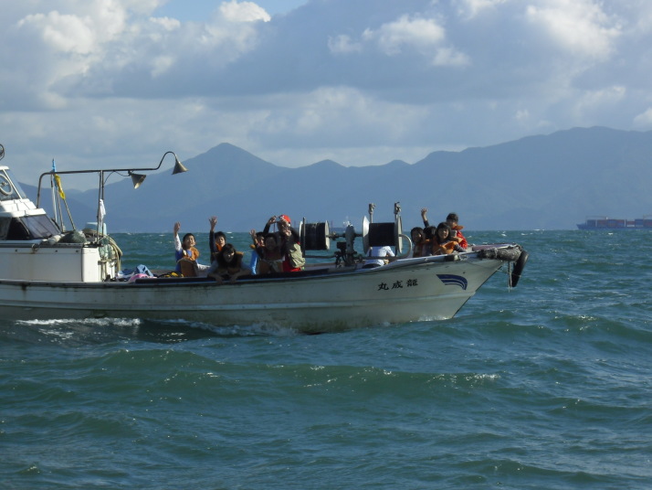 藍島・若松近海でスナメリウォッチングを行いました。当日は、波が高いなど条件に恵まれず、残念ながらスナメリに会うことはできませんでしたが、漁船に初めて乗る子も多く、漁船クルージングを楽しみました。