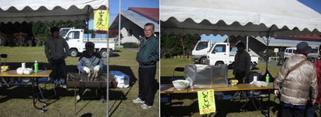 添田町観光協会の方による「英彦山物産展・やまめの塩焼き・しし汁コーナー」
