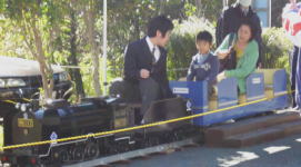 朝早くから、SLの準備をしていただきました。子どもたちにとても好評で、160名近くの子どもたちが楽しみました。乗っている様子をデジカメにおさめている保護者の方の笑顔がとても印象的で、何回も乗っている子どもたちもいました。 |