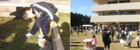 うさぎを膝の上にのせたり、やぎと一緒に写真を撮ったりしている皆さんでいっぱいでした。特にうさぎは小さな子どもたちに大人気でした。5羽のうさぎは、常に誰かに抱かれていて、子どもたちもうさぎもうれしそうでした。 |
