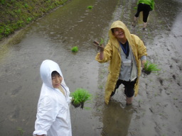 家族同士でバンガローにお互いに遊びに行って、田植えでは本当に仲よくなれました。