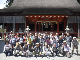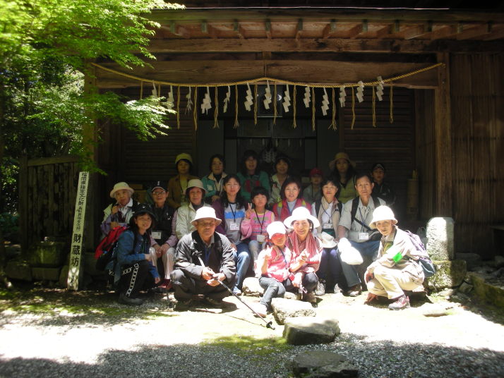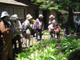 | 新緑散策コースは、青年の家から財蔵坊までを散策するコースです。添田町観光ガイドボランティアの早田利光さん、早田真智子さんにガイドをしていただきました。途中、雪舟庭園や奉幣殿、財蔵坊などに立ち寄り、早田さんに英彦山の歴史や自然について詳しくお話を聞きました。今まで知らなかった英彦山のことを知ることができよかったとの感想を参加者の方々からいただきました。 |