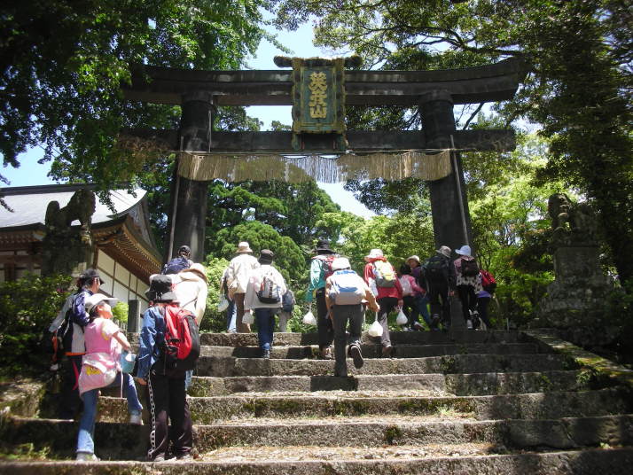 1日目は、午後に講師を招いての講話を聴き、夜は添田町の行事「英彦山山開き前夜祭」へ参加しました。英彦山の歴史や文化に触れていただき、英彦山への興味・関心を高めるとともに、翌日の登山への意欲を新たにされたようです。