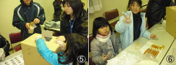 その後、炊飯場に移動してチーズ、ちくわ、かまぼこ、ウインナーの食材を燻製にしました。(写真F)野外での活動で、とても寒かったのですが、子ども達は「おいしい」と言いながら食べていました。(写真G) |