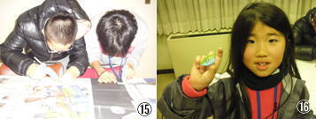 葉っぱを利用してブローチつくりを行いました。慣れない手つきで工夫をしながら一生懸命に作っていました。(写真N)世界にひとつだけのブローチが完成しました。(写真O)