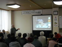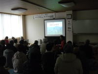 | 全日本写真連盟西部本部委員である髙橋 光男氏を講師にお招きし、「冬山風景の撮影~ワンポイントレッスン~」と題して、基本的な撮影技術から高度な画像処理の仕方まで幅広く教えていただきました。同じ風景写真でも、背景の色味を変えるだけで見る側に伝わる印象が大きく変わることなど、パソコンを使っての説明はとても分かりやすく、参加者もとても参考になった様子でした。 |