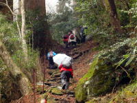 | 玉屋神社までの山道を登る参加者 |