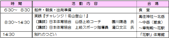 事業参加前から積雪や道路状況など、青年の家のスタッフから親切なお電話をいただきました。若きスタッフの熱いパワー・熱心な仕事ぶりに大変感動しました。 |