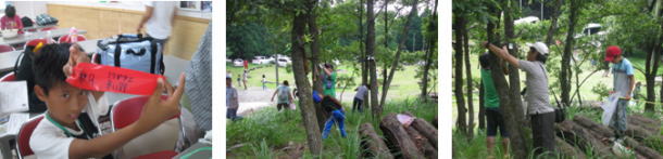 クワガタを採集することを目標に、親子でトラップ作りを行いました。バナナを焼酎に漬け、家族毎にポイントを探しトラップを仕掛けていました。実際には、クワガタを捕まえることはできませんでしたが、トラップの作り方・どのような場所にいるか考え仕掛けました。朝早く起きてトラップを確認したり、家族でクワガタを捕まえることに必死になっていました。クワガタを採集できなかったことがとても残念です。