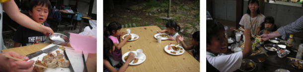 | ↑うまそ〜 ↑みんなでハイ、チーズ! ↑疲れた〜!別れのつどいの様子 |