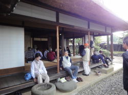| 2日目は、バスで日田市へ移動し、史跡咸宜園跡を見学しました。「秋風庵」内で咸宜園の教育についてや廣瀬淡窓及びその門下生の人柄についても詳しく話を聴くことができ、咸宜園での取り組みや創立の理由などについて理解を深めることができました。また、咸宜園の塾舎である「秋風庵」や書斎「遠思楼」などの建物が良好に保存されており、塾生でにぎやかだったであろう当時を偲ぶことができました。 |