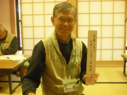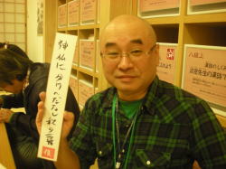 | 自作の俳句にできたてほやほやの落款を押して記念撮影! |