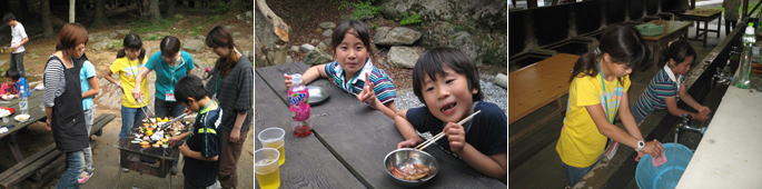 野外調理では、日ごろほとんど手伝いをしない子どもが、積極的に活動する姿に感動した保護者がたくさんいたようです。また、出来上がった料理を交換するなど参加家族間での交流も行われていました。