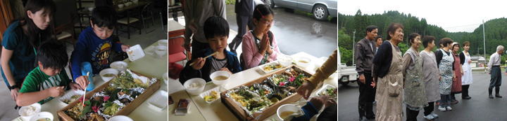 昼食は、地元ボランティアの方々から作っていただいた山菜料理を堪能しました。(活動C写真)