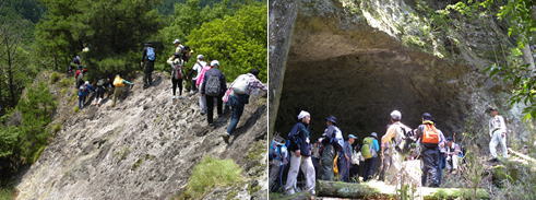 新設された、修験道の古跡をめぐるコースには添田町観光ガイドボランティアの植田周平氏を講師に招きました。27名の参加者があり、次々に現れる岩窟や鋭く切り立った岩尾根などの変化に富んだコースを堪能しました。
