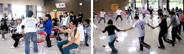 | 集合ゲームやジャンケンゲームなど、アイスブレイクに役立つゲームを体験しました。次から次へとゲームが展開され、参加者はすぐに打ち解けることができました。またグループ活動を通してリーダーの役割を学びました。 |