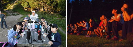 最後に保護者の方と一緒にパン・燻製を食べながら5日間の思い出話をしていました。別れのつどいの前にスライドショーを行い5日間を振り返りながら涙する子やスタッフもたくさんいました。 本当に暑く,きつい5日間でしたがそれを乗り越えたみんなの表情が素晴らしく輝いていました。 |