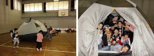 夜は、男女別各6人でテントの中で休みました。班で協力してテントを張りました。初めての寝袋とテントにワクワクしてなかなか寝付けませんでした。