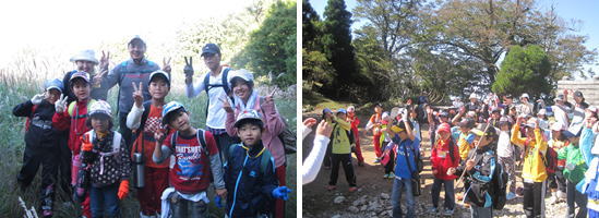 片付けと準備を済ませた後、このキャンプの目玉である英彦山登山に挑みました。子ども達はこちらの心配をよそに、山伏が修業したような険しい山道をスルスルと登って行きました。道中、ロープを手繰ったり、両手両足を使ったりして登るところもありましたが、みんな辛抱強く励まし合って登りました。そして、出発から3時間後、なんと全員が無事に登り切ることができました。山頂で食べるおにぎりと温かい味噌汁の味は格別のようでした。帰りも急な岩場を鎖を使って降り、我慢強く歩き切りました。英彦山青年に家に着いたのは出発から7時間半後のことでした。子ども達は疲れた様子も見せず、目標を達成した充実感であふれていました。