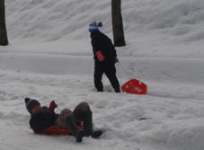 そり遊びでは、最初はなかなかコツがつかめなかった子どもたちでしたが、次第にすごいスピードでゴールに飛び込んで行っていました。
