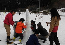 雪だるまは、特性のクリスマスツリーを囲むような場所に作りました。それぞれのグループが創意工夫しながら、いろいろな雪だるまが出来上がりました。