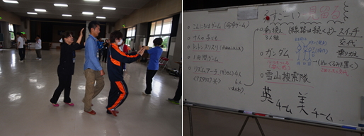 「こんにちはゲーム」や「リズムアーチ」などのレクリエーションを体験し、楽しみながら信頼関係を築く仲間づくりの指導者としての考え方について学びました。また、「ガンダムゲーム」や「雪山捜索隊」のレクリエーションをとおして、安全管理と緊急時の対処法について考えました。次から次へとレクリエーションが展開され、そのテンポの良さに驚かされました。