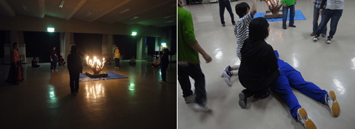 参加者全員で役割を分担し、第1部で火を迎える儀式、第2部でレクリエーション、第3部で火を送る儀式を行いました。第1部と第3部は粛々と進行され、第2部はグループごとに趣向を凝らしたレクリエーションが展開されました。