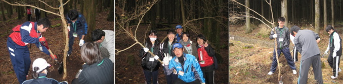 ・ 今回3回目の活動だったけど、やっぱり充実した活動でした。2回目の植樹活動は大変だった けど、森林を助けたと思ったら、すごくすがすがしい気持ちになりました。今後もこのような活に積極的に参加していきたいです。 |