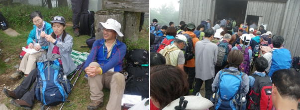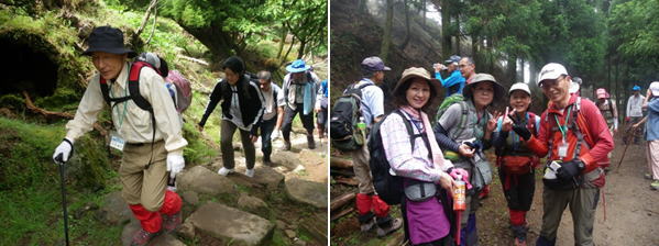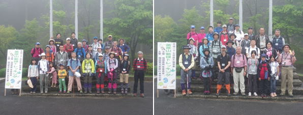 | 登山コースは、当日の明け方まで降り続いた雨の影響で、予定を変更し、1つのコースを全員で登ることにしました。登山には42名が参加し、AとBの2グループで実施しました。 |
