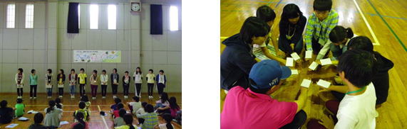 3日間一緒に過ごした学生ボランティアや仲間といよいよお別れです。この3日間、子どもたちは班の仲間とともに過ごした日々を振り返りました。はじめにスライドショーを見て、子どもたちは活動を思い起こしました。つぎに学生ボランティアの司会のもと、各班でキャンプをとおしてがんばったことや楽しかったことを一人一人発表し合い、互いの努力を称え合いました。きついことを乗り越え、充実したキャンプを過ごした子どもたちの表情は清々しいものでした。