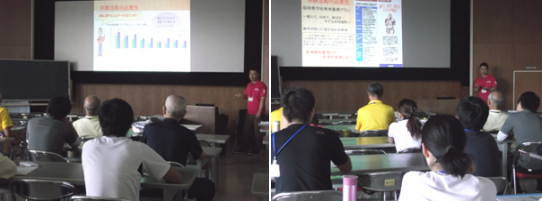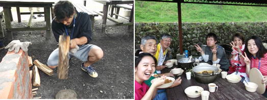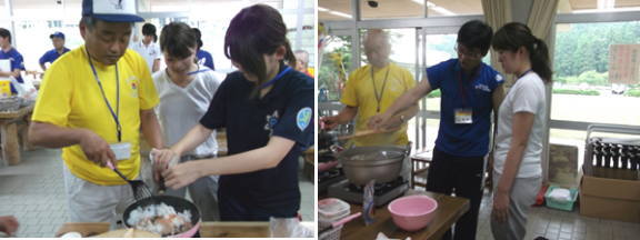 午後からは、参加者に体験活動の意義と危機管理について理解していただくために、青年の家主任社会教育主事が「体験活動とは」「体験活動の必要性」「体験活動を通した人間関係づくり」などについて講話を行いました。ここでは、参加者に野外調理の場面を想定してもらい、どんな危険が考えられるかを話し合ってもらいました。この話し合いを、野外調理活動における食材の調理や道具の使用の時に生かしてもらいました。