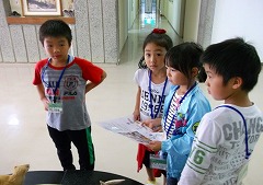 第1回と第2回は雨天のため、フォトラリーの替わりに館内フィールドビンゴを行いました。館内フィールドビンゴは、青年の家館内のチェックポイントを、コース図を頼りに探していく活動です。子どもたちは、コース図に載っている写真と同じポイントを探しながら、班で協力して活動を楽しみました。
