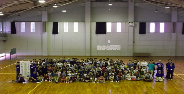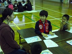 キャンプの初日、2日間一緒に過ごす友だちや学生ボランティア等と出会いのつどいを行いました。保護者に連れられた子どもたちは、緊張した表情でやってきました。