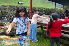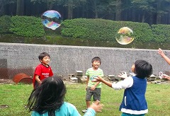 最後の活動は、昼食のために子どもたちが楽しみにしていたピザづくりを行いました。ピザづくりでは、それぞれの役割を責任もって行うことができました。粉からつくった生地を自分の好きな形に整えたり、トッピングをしたりして美味しいピザをつくることができました。また、生地の発酵を待つ間にシャボン玉づくりに挑戦しました。シャボン玉は大きいもので直径が40cmを超えるものもあり、子どもたちからは大きな歓声が上がりました。