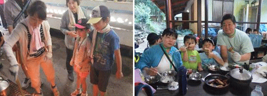 | ↑家族で協力して調理をする様子 |