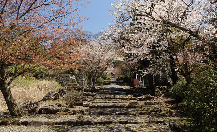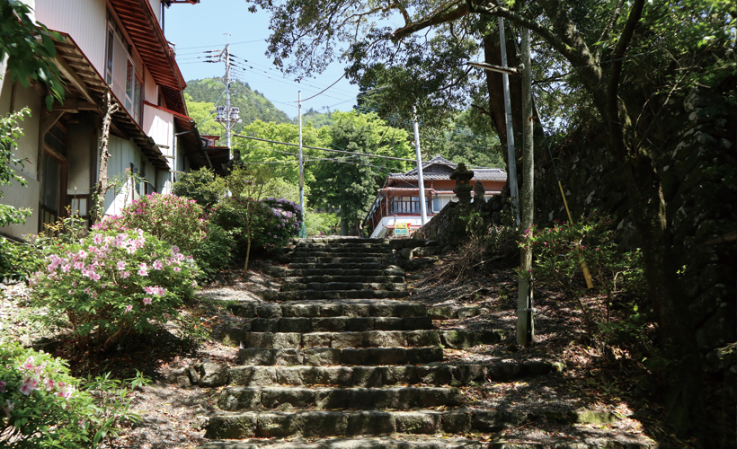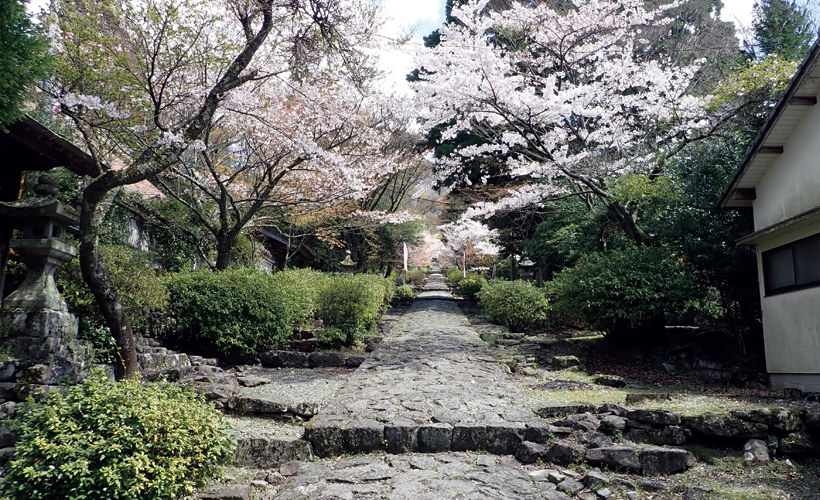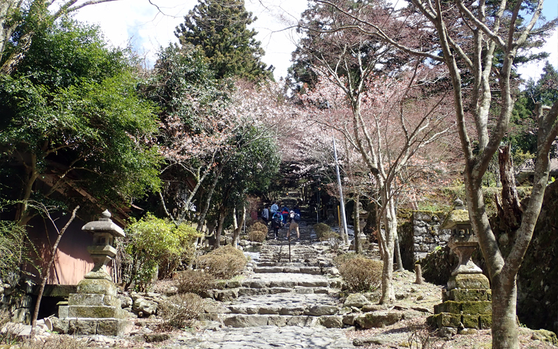 石畳のような参道がしばらく続きます。道の両端には、かつて山伏が暮らした「坊」があります。