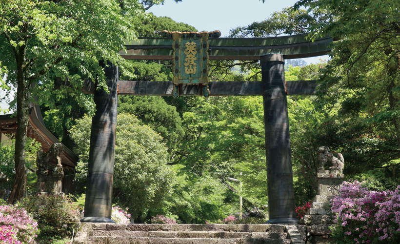 銅の鳥居から奉幣殿までは、山頂まで続く英彦山神宮表参道の一部であり、英彦山の歴史や文化を深く味わえる場所です。全長約900mで、410段もの石段や長く美しい石畳で道が作られています。春は桜・つつじ・新緑、秋は紅葉などの自然も楽しむことができます。銅の鳥居から山頂を目指す登山にも、ぜひ挑戦してみてください。