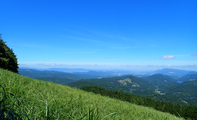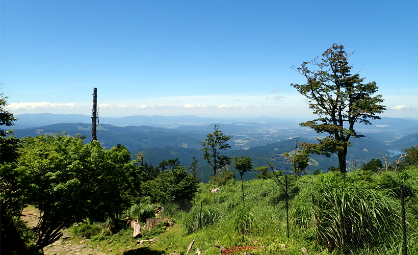振り返ると、田川市や飯塚市等の町が見渡せます。(地図上のhの位置)