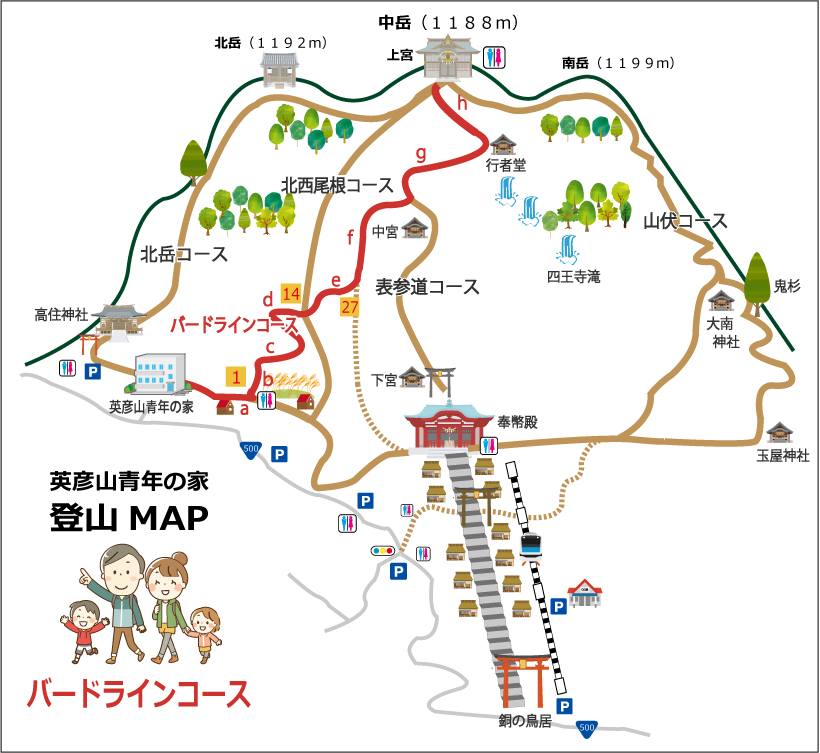 九州自然歩道にあるバードラインの入口です。(地図上のaの位置)