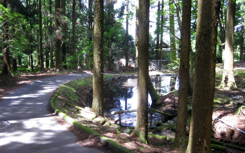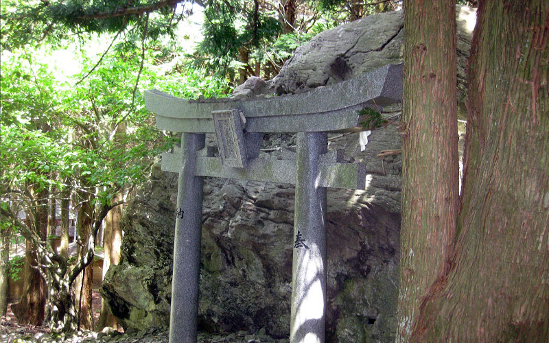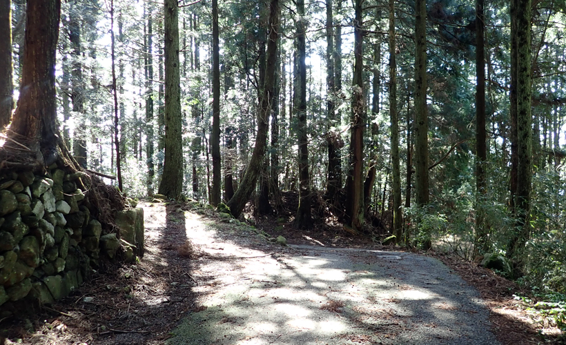 九州自然歩道を進むと亀彦地王神があります。まっすぐ進みます。