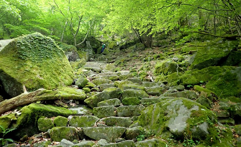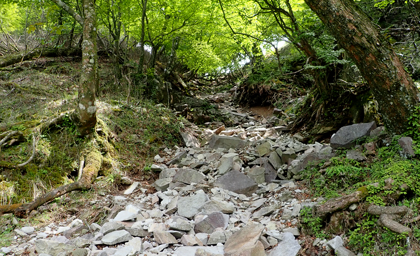 わりと斜面の急な石の道が続きます。(地図上のbの位置)