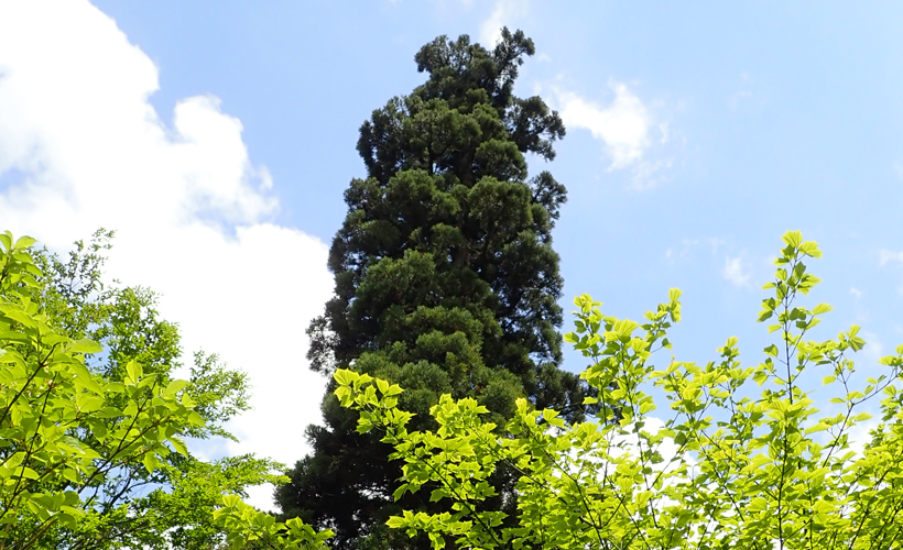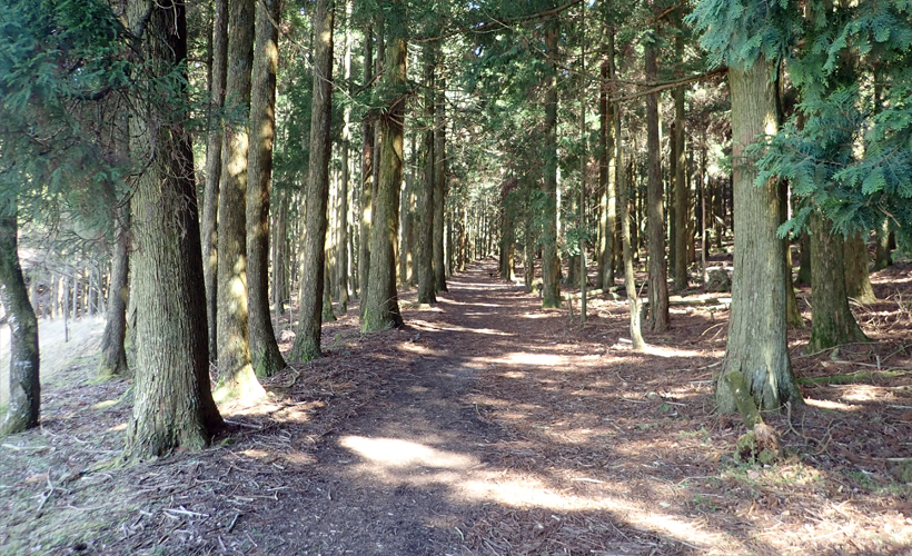 杉林の中に続く九州自然歩道を歩きます。(地図上のaの位置)