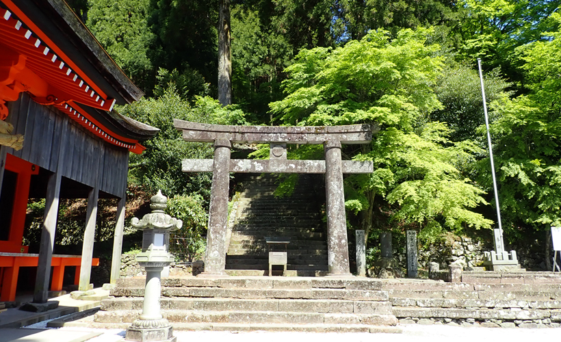 奉幣殿にある石の鳥居が登山道のスタートです。石の鳥居から中岳の頂上手前にある木の鳥居までの範囲は昔、山伏の修行の区域でした。