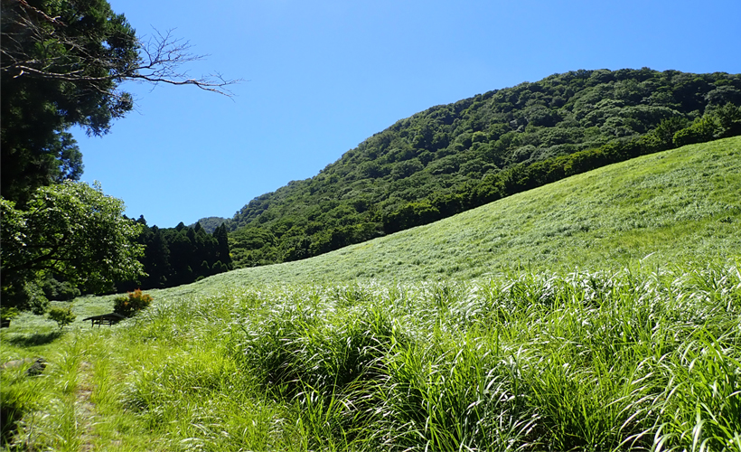 九州自然歩道を歩いていくと左側に鷹巣原高原が見えてきます。(地図上のaの位置)
