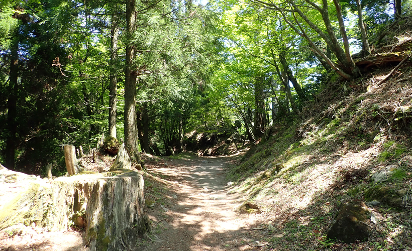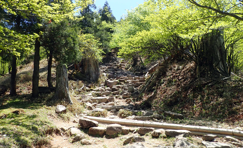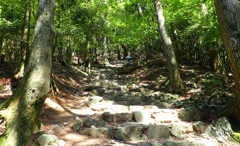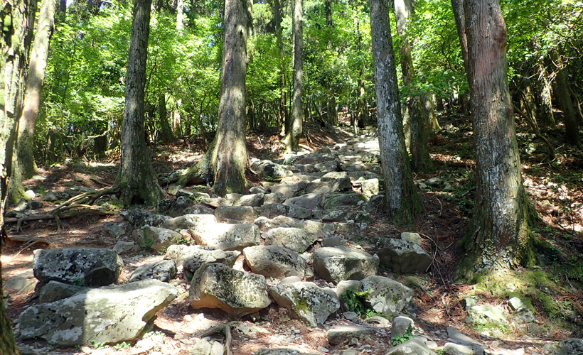 中宮付近はやや平らな道ですが、すぐに段差の大きい石階段になります。