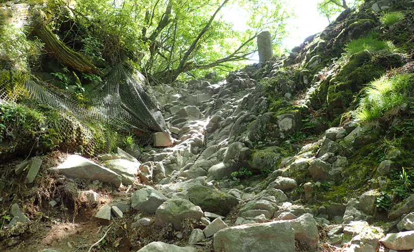 斜面が急な石階段が続きます。(地図上のcの位置)