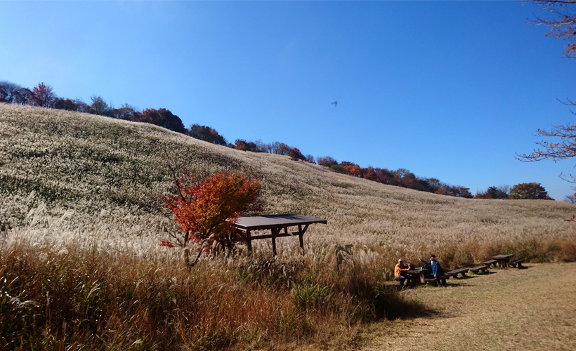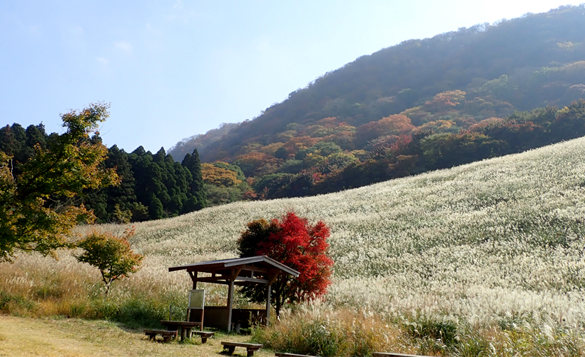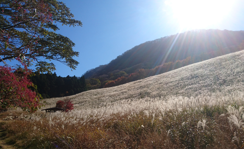 英彦山青年の家より九州自然歩道を約7分歩いたところに広がっている鷹巣原高原。別名「ススキヶ原」と言われています。面積は約6万平方メートル。春から夏にかけては美しい緑色のススキの葉で覆われ、秋はススキの穂が一面に広がります。冬は大雪が降っていた頃はスキー場として利用されていました。晩秋になると、透き通った青空、白銀のススキ、赤や黄色の紅葉の3つが揃い、高原はまるで絵画のような世界になります。見頃は10月中旬から11月初旬です。高原の上には休憩所があり、そちらからも美しい風景を眺めることができます。青年の家の方に向けて「ヤッホー」と叫ぶとこだまが返ってくるスポットでもあります。●青年の家からの詳しい行き方は→こちら |