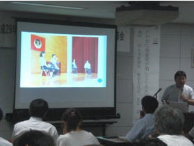 福岡県立城南高等学校の豊野先生に、学校全体で取り組んでいる主権者教育について具体的に話していただきました。昨年の衆院選では、城南高校の生徒の投票率は90%をこえていたそうです。実践発表では、選挙管理委員会と連携した模擬選挙を行っていることなど生徒が政治や選挙を身近に感じられるような工夫をたくさん知ることができました。参加者からも「具体的な話から、学校全体で取り組む主権者教育のひとつのイメージができました。」、「多忙な中、先生たちが試行錯誤しながら生徒を導いている姿や奮闘ぶりに感動しました。」などの感想がありました。 |