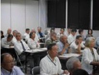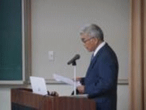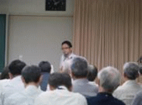 | 「自治会の可能性と課題―それと公民館の可能性と課題」と題しての講話。自治会の課題として、人材の不足が挙げられる。社会の変化によりタテ社会のリクルート制は崩壊しつつある。それは、公民館の運営においても同じ課題がある。今後は、ヨコ型人財づくりとして公民館等を利用して人のつながりを作っていくことが大切である。 |