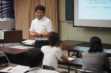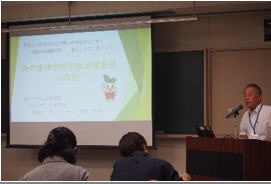 | 4月の地方教育行政法の改正で、コミュニティ・スクールが努力義務化されたことにより、学校関係者を含め、様々な関係機関においても、学校と地域の連携・協働についての関心が高まっている。今回の研修では、国や県の方向性を示し、コミュニティ・スクールと地域学校協働活動の関係性とその効果について説明し理解促進を図った。また、地域側の事例として2つの実践発表を示し、関係機関の連携・協働の必要性を知らせることができた。さらに、鈴木教授の講話により、「地域とともにある学校」へ向かうためには、学校・家庭・地域それぞれの立場で責任と役割を負うことの必要性について考えることができた。 |